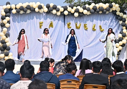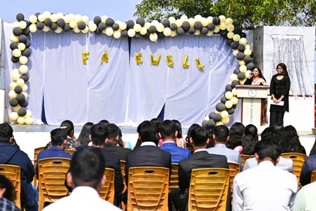As you step beyond these familiar corridors, may the values learnt here light your path and the memories gathered embrace the promise of tomorrow. The school campus resonated with warmth and nostalgia as the Farewell Ceremony for the Class XII students was celebrated with grace and fond memories. The celebration began with a graceful ramp walk, as the students made a poised and confident entry, drawing warm applause from all present. The mood was further elevated with Group Dance, a vibrant performance that reflected youthful spirit and the shared journey of the batch. A moment of honour and recognition followed with the conferring of Titles, along with the presentation of Hampers and Graduation Caps, graciously distributed by the honourable Principal and the subject teachers, symbolising achievement, gratitude and transition into a new chapter of life. The honourable Principal, Mrs. Vineeta Srivastava, addressed the students and shared that the farewell signified not an end, but the beginning of a promising new journey. She highlighted how the years spent in school had shaped their character, values and discipline, and encouraged them to step into the future with confidence, humility and purpose. She reminded them that the school would always remain their second home and extended her heartfelt wishes for success, happiness and fulfillment, expressing her hope to welcome them again as proud alumni. The celebration continued with a joyful Cake Cutting ceremony, followed by a lively Game Session, which added laughter and warmth to the gathering. The announcement of the Prom King and Prom Queen, along with other special titles, filled the hall with excitement. The programme concluded with a gracious Vote of Thanks, after which the students came together for a joyful Cap Toss and Photo Session. The occasion culminated with a sumptuous lunch, bringing the memorable Farewell celebration to a graceful close.