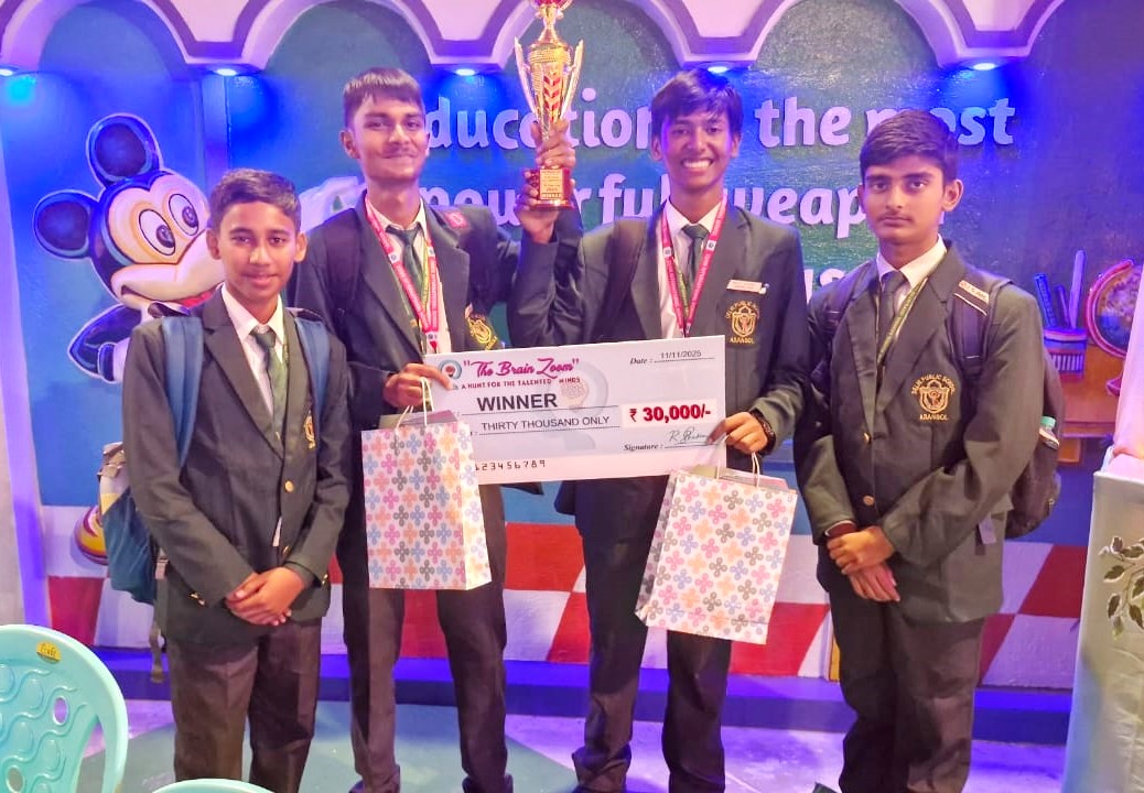 Victory is sweetest when it crowns the brilliance of the mind. In a splendid triumph that illuminated the spirit of intellectual brilliance, the senior team of Delhi Public School, Asansol emerged victorious at the Inter-School Quiz Competition ‘The Brain Zoom – A Hunt for the Talented Minds’, clinching the First Position Trophy and a cash prize of ₹30,000. The prestigious event was held at Zoom International School, Durgapur, on 11th November 2025, conducted by Nutshell, one of India’s most eminent quiz organisers. With over fifty reputed schools from the West Bengal (West Zone) vying for the title, the atmosphere brimmed with excitement, intellect and competitive zeal. Representing DPS Asansol, Ayush Chowdhury (Class XI-A) and Adreej Das (Class X-A) captivated the audience with their sharp intellect, composure and teamwork. Their composure and intellect amidst fierce rounds of electrifying intensity earned them well-deserved acclaim. This glorious achievement added another feather to the illustrious cap of Delhi Public School, Asansol, reaffirming its tradition of excellence and its belief in the power of knowledge to inspire and uplift.