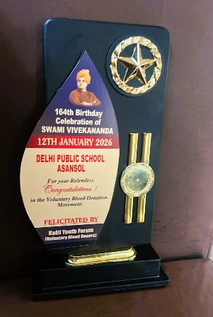 A Day of Service, Song and Social Responsibility Where young voices flowed like a gentle prayer, the Kulti Youth Forum organised a Voluntary Blood Donation Movement on the occasion of Swami Vivekananda's 164th Birth Anniversary on 12 January 2026 at Kulti. Delhi Public School Asansol was felicitated by the Kulti Youth Forum for its relentless support and participation in this noble cause. The programme was graced by Maharaj ji from Purulia Ramkrishna Mission, the MLA of Kulti Shilpanchal, members of the Doctor's Forum, the Ex-Principal of Chittaranjan College, and Brahmakumari Chirkunda. Under the visionary inspiration and support of Principal Mrs Vineeta Srivastava, DPS students participated by rendering melodious songs, beautifully echoing Swami Vivekananda's ideals of service, compassion and selfless dedication to humanity.