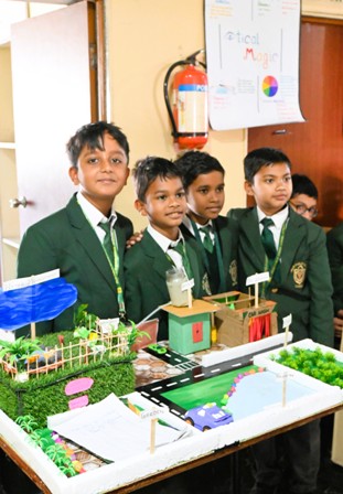 An exhibition is not merely a display of models, but a display of minds at work. The Interdisciplinary Exhibition emerged as a magnificent confluence of knowledge, creativity and innovation, where learning transcended the boundaries of individual subjects and blended into a harmonious whole. The exhibition arena was thoughtfully divided into five vibrant segments—Science, Social Science, Mathematics, Computer, and Art - each echoing creativity and innovation. The Science and Social Science sections stood out with exceptional presentations that captivated every visitor. Science displayed innovative models such as the AI-based chatbot “Jarvis,” Optical Magic demonstrating reflection and refraction through periscope and kaleidoscope, Robo Dustbin for intelligent waste segregation, anti-collision cars, and the fascinating Magical Liquid experiment. Live demonstrations of DNA isolation, milk adulteration tests and microbes in pond water added depth and authenticity. Social Science impressed equally with elaborate working models on dams, ecosystems, EVM, time zones, the Indus Valley Civilization, Greenhouse effect and the layers of the atmosphere. Mathematics revealed its elegance through Integration, Pascal’s Triangle, Pythagoras Theorem, Conic Sections, Algebraic Identities and creative models like Abacus and World of Shapes. The Computer section showcased robots and a Scratch game reflecting technological skill. The innovative models drew heartfelt admiration from parents, who applauded the students’ ingenuity, confidence and depth of understanding. The exhibition was organised under the inspiring guidance of the honourable Principal Ma’am, Ms Vineeta Srivastava, who lauded the students for their innovation and encouraged them to strive for even more refined and impactful ideas in the future so that standards of excellence may continue to rise to greater heights.